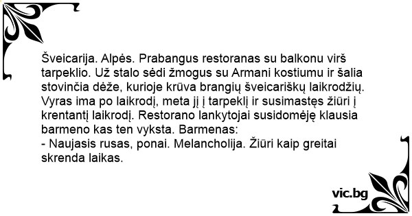 - Naujasis rusas, ponai. Melancholija. Žiūri kaip greitai skrenda laikas.