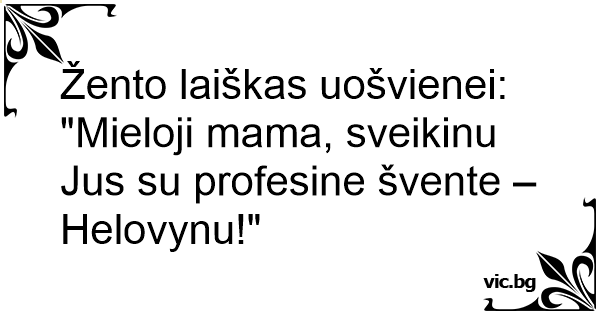 "Mieloji mama, sveikinu Jus su profesine švente – Helovynu!"