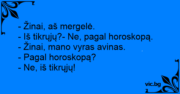 - Iš tikrųjų?- Ne, pagal horoskopą.