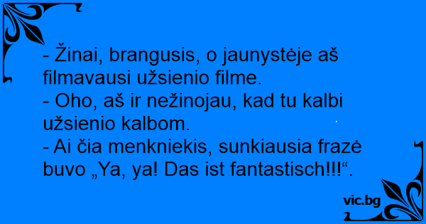 - Ai čia menkniekis, sunkiausia frazė buvo „Ya, ya! Das ist fantastisch!!!“.