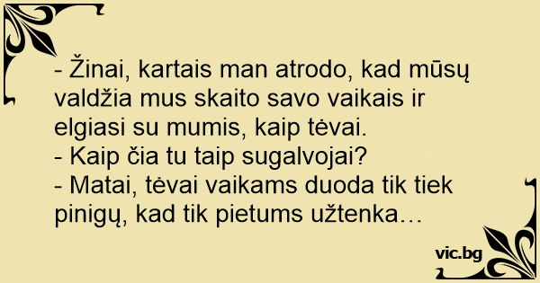 - Žinai, kartais man atrodo, kad mūsų valdžia mus skaito savo vaikais ir elgiasi su mumis, kaip tėvai.