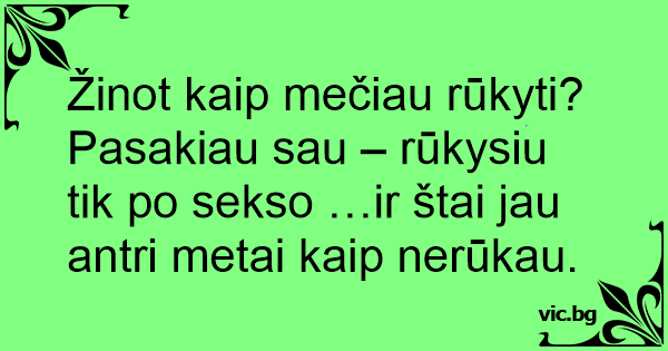 Pasakiau sau – rūkysiu tik po sekso …ir štai jau antri metai kaip nerūkau.
