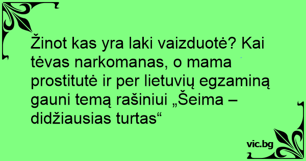 Žinot kas yra laki vaizduotė? Kai tėvas narkomanas, o mama prostitutė ir per lietuvių egzaminą gauni temą rašiniui „Šeima – didžiausias turtas“