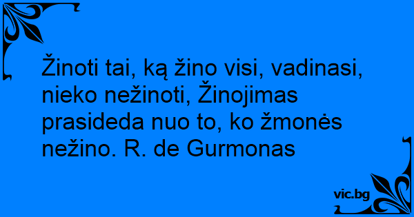 Žinoti tai, ką žino visi, vadinasi, nieko nežinoti, Žinojimas prasideda nuo to, ko žmonės nežino. R. de Gurmonas