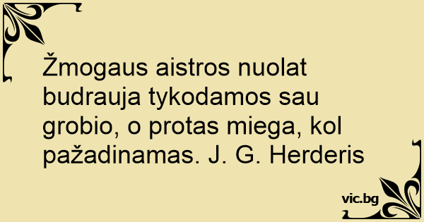 Žmogaus aistros nuolat budrauja tykodamos sau grobio, o protas miega, kol pažadinamas. J. G. Herderis