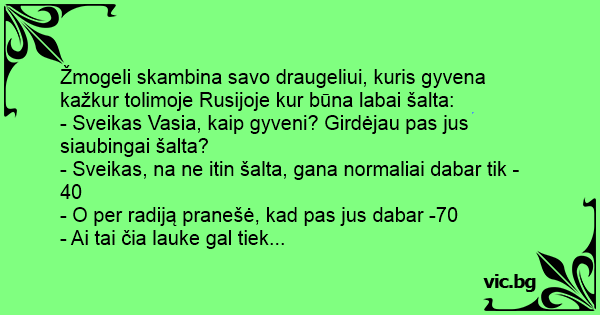 Žmogeli skambina savo draugeliui, kuris gyvena kažkur tolimoje Rusijoje kur būna labai šalta: