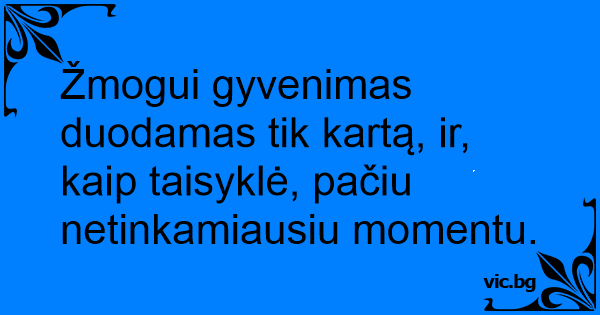 Žmogui gyvenimas duodamas tik kartą, ir, kaip taisyklė, pačiu netinkamiausiu momentu.