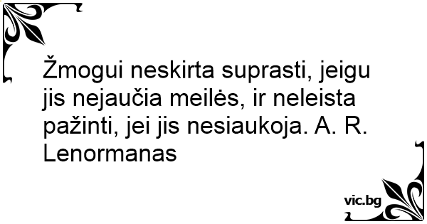 Žmogui neskirta suprasti, jeigu jis nejaučia meilės, ir neleista pažinti, jei jis nesiaukoja. A. R. Lenormanas