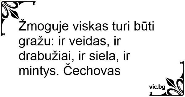 Žmoguje viskas turi būti gražu: ir veidas, ir drabužiai, ir siela, ir mintys. Čechovas