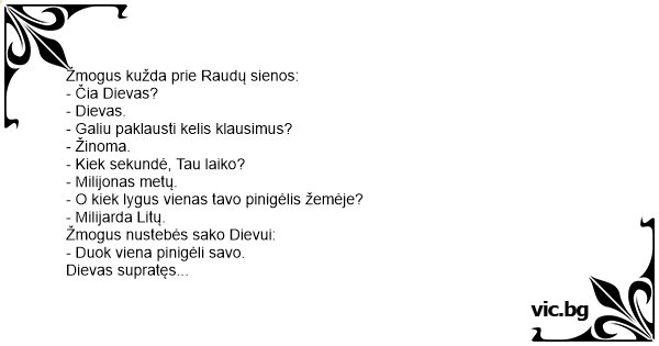 - O kiek lygus vienas tavo pinigėlis žemėje?