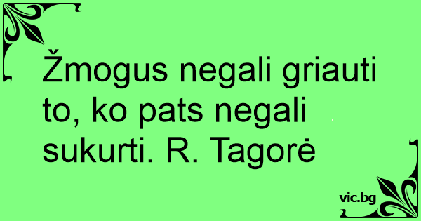 Žmogus negali griauti to, ko pats negali sukurti. R. Tagorė