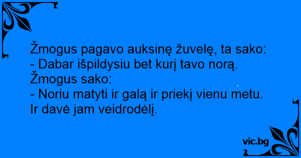 Žmogus pagavo auksinę žuvelę, ta sako: