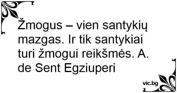 Žmogus – vien santykių mazgas. Ir tik santykiai turi žmogui reikšmės. A. de Sent Egziuperi