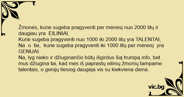 Na o tie, kurie sugeba pragyventi iki 1000 litų per mėnesį yra GENIJAI.