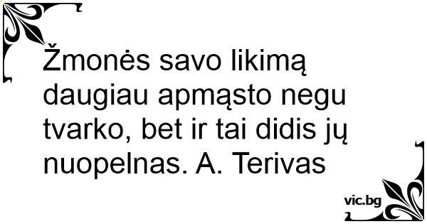 Žmonės savo likimą daugiau apmąsto negu tvarko, bet ir tai didis jų nuopelnas. A. Terivas