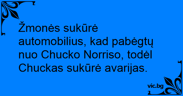 Žmonės sukūrė automobilius, kad pabėgtų nuo Chucko Norriso, todėl Chuckas sukūrė avarijas.