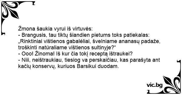 - Ooo! Žinoma! Iš kur čia tokį receptą ištraukei?