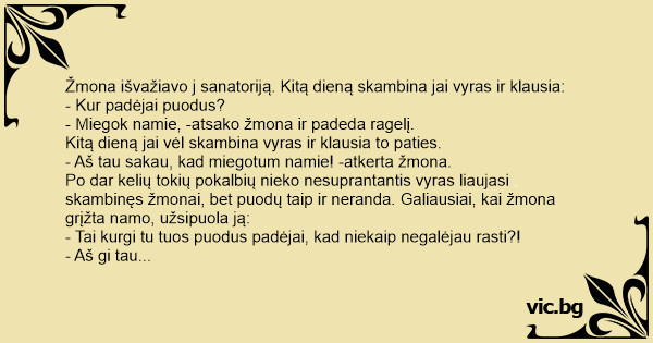 - Miegok namie, -atsako žmona ir padeda ragelį.