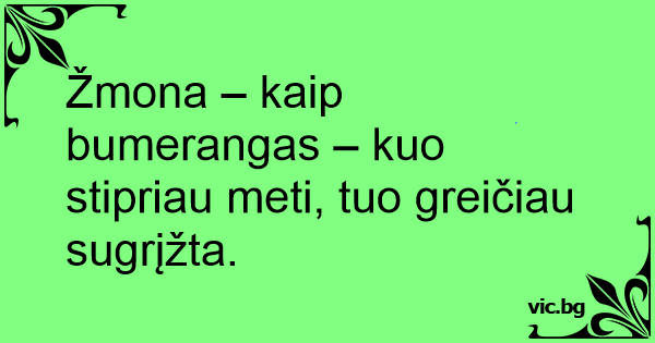 Žmona – kaip bumerangas – kuo stipriau meti, tuo greičiau sugrįžta.
