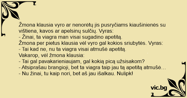 - Atsiprašau brangioji, bet ta viаgrа taip jau tą apetitą atmušė…