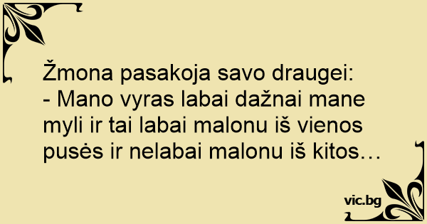 - Mano vyras labai dažnai mane myli ir tai labai malonu iš vienos pusės ir nelabai malonu iš kitos…