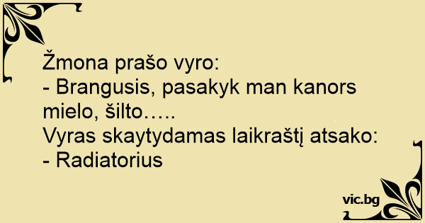 - Brangusis, pasakyk man kanors mielo, šilto…..