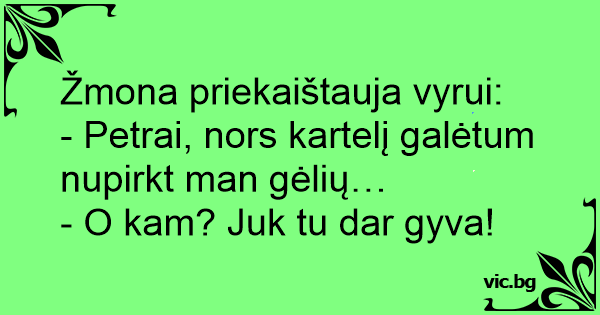 - Petrai, nors kartelį galėtum nupirkt man gėlių…