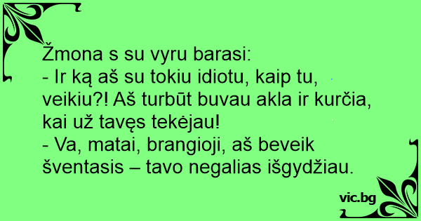 - Ir ką aš su tokiu idiotu, kaip tu, veikiu?! Aš turbūt buvau akla ir kurčia, kai už tavęs tekėjau!