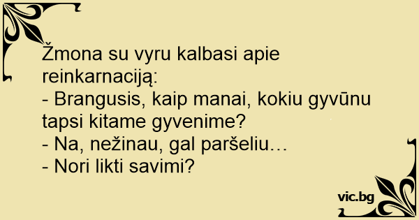- Brangusis, kaip manai, kokiu gyvūnu tapsi kitame gyvenime?