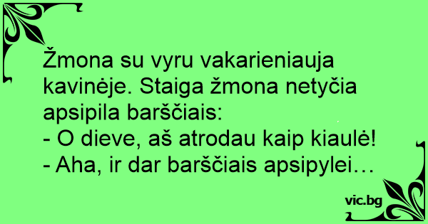Žmona su vyru vakarieniauja kavinėje. Staiga žmona netyčia apsipila barščiais: