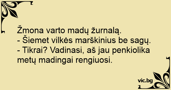 - Tikrai? Vadinasi, aš jau penkiolika metų madingai rengiuosi.