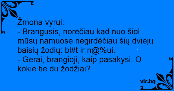 - Brangusis, norėčiau kad nuo šiol mūsų namuose negirdėčiau šių dviejų baisių žodių: bl#t ir n@%ui.