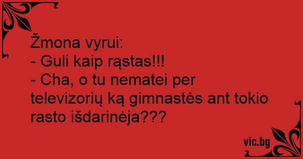 - Cha, o tu nematei per televizorių ką gimnastės ant tokio rasto išdarinėja???