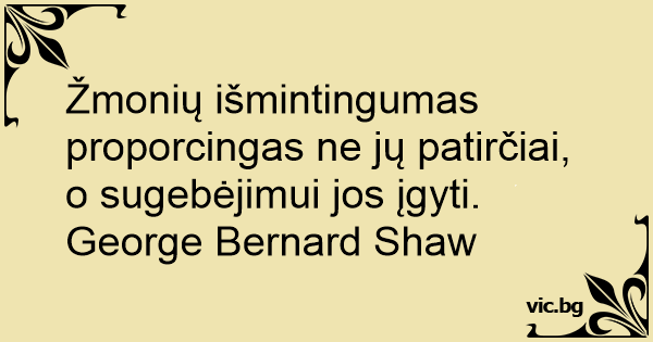 Žmonių išmintingumas proporcingas ne jų patirčiai, o sugebėjimui jos įgyti. George Bernard Shaw