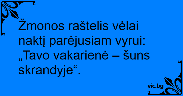 Žmonos raštelis vėlai naktį parėjusiam vyrui: