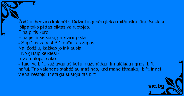 - Nu tai aš ir sakau – bl*t na*uj supi*tas bl*t zapas!