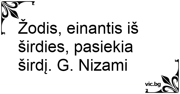 Žodis, einantis iš širdies, pasiekia širdį. G. Nizami