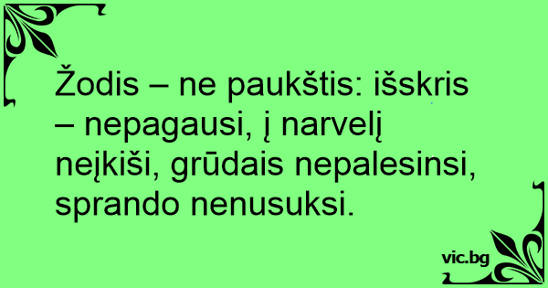 Žodis – ne paukštis: išskris – nepagausi, į narvelį neįkiši, grūdais nepalesinsi, sprando nenusuksi.
