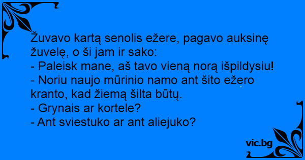Žuvavo kartą senolis ežere, pagavo auksinę žuvelę, o ši jam ir sako: