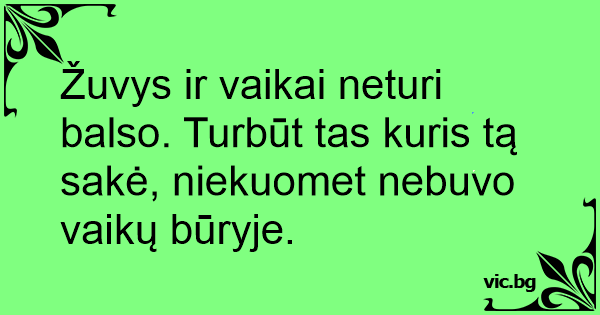 Žuvys ir vaikai neturi balso. Turbūt tas kuris tą sakė, niekuomet nebuvo vaikų būryje.