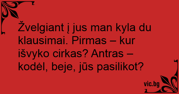 Žvelgiant į jus man kyla du klausimai. Pirmas – kur išvyko cirkas? Antras – kodėl, beje, jūs pasilikot?