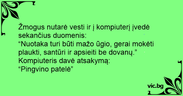 Žmogus nutarė vesti ir į kompiuterį įvedė sekančius duomenis: