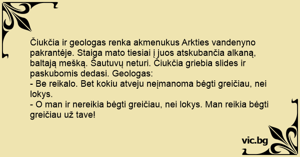 - O man ir nereikia bėgti greičiau, nei lokys. Man reikia bėgti greičiau už tave!