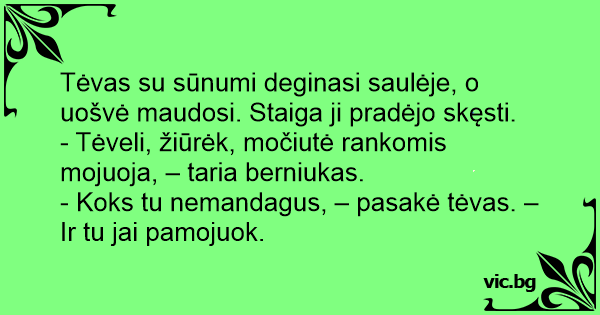 - Koks tu nemandagus, – pasakė tėvas. – Ir tu jai pamojuok.