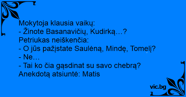 - Tai ko čia gąsdinat su savo chebrą?Anekdotą atsiuntė: Matis