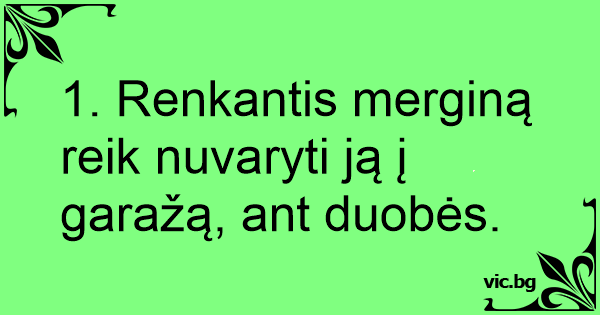 1. Renkantis merginą reik nuvaryti ją į garažą, ant duobės.