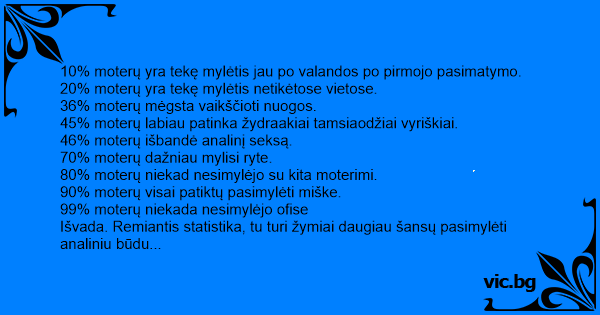 3. 10% moterų yra tekę mylėtis...
