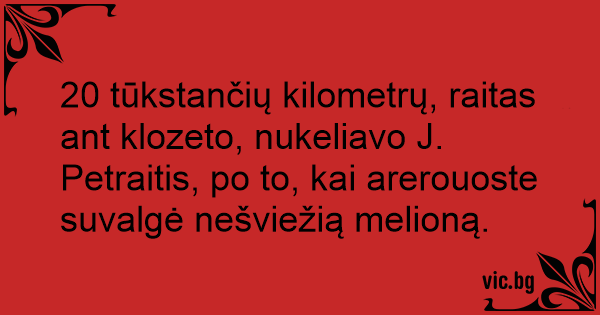 20 tūkstančių kilometrų, raitas ant klozeto, nukeliavo J. Petraitis, po to, kai arerouoste suvalgė nešviežią melioną.