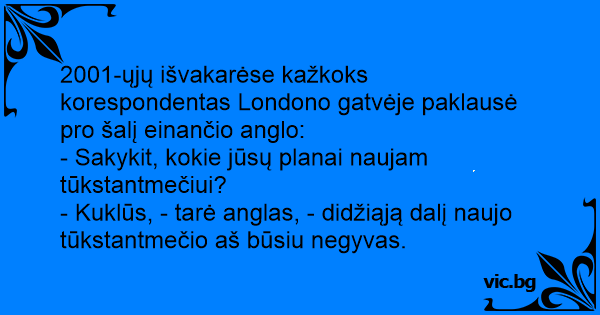 2001-ųjų išvakarėse kažkoks korespondentas Londono gatvėje paklausė pro šalį einančio anglo: