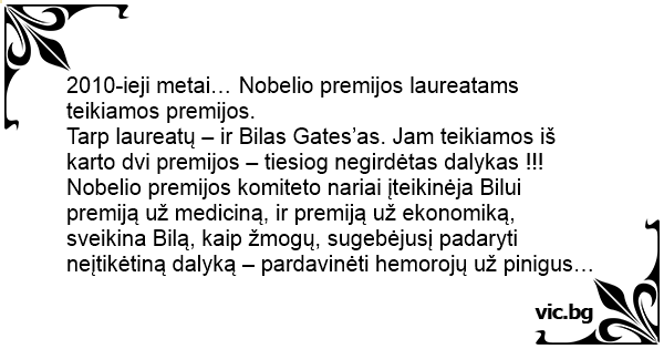 Tarp laureatų – ir Bilas Gates’as. Jam teikiamos iš karto dvi premijos – tiesiog negirdėtas dalykas !!!